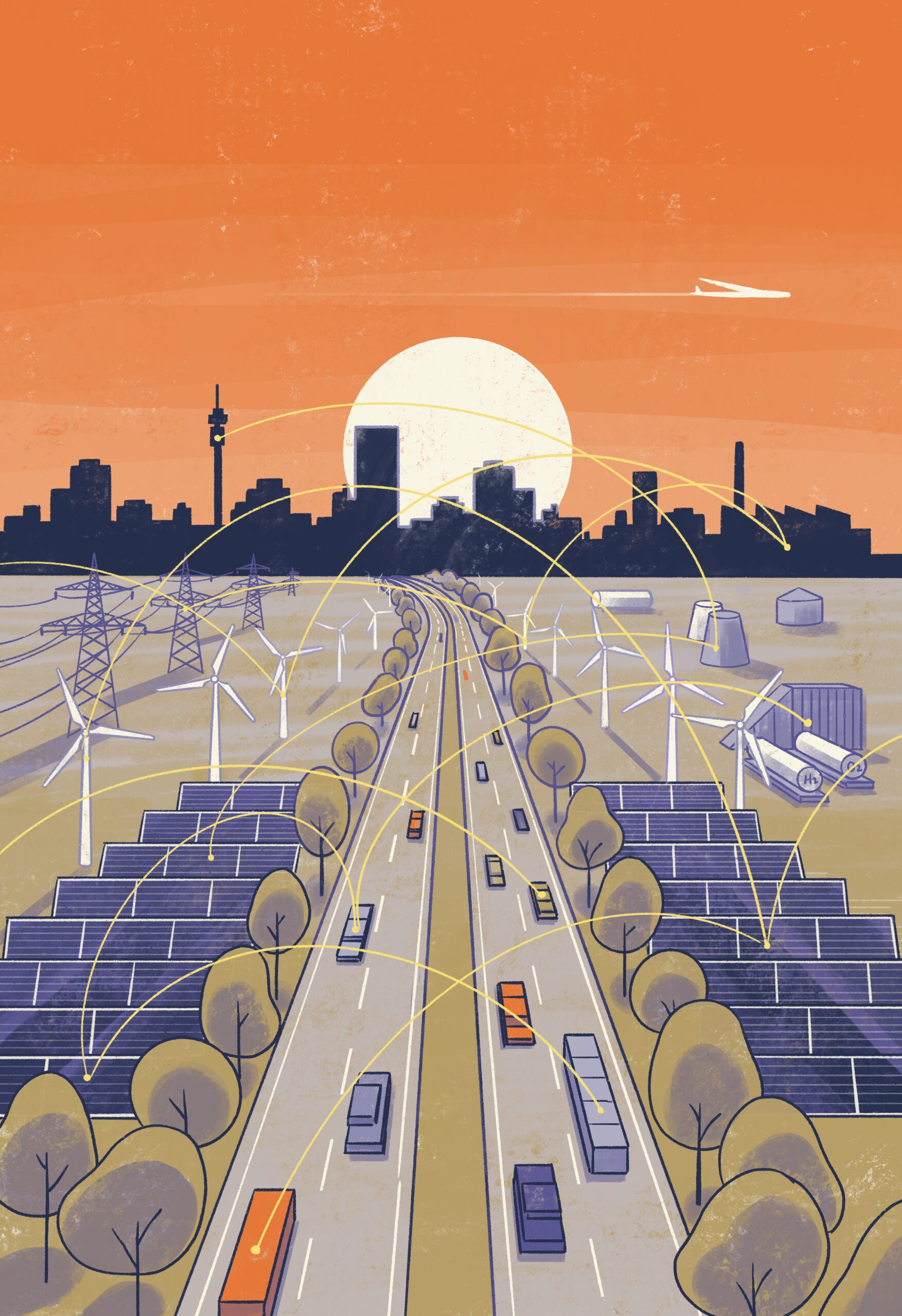 Cover illustration and a series of illustrations for inpact Media Verlag’s June 2023 issue “Energie der Zukunft – Klimaschutz, Innovation, Wachstum” (Energy of the Future – Climate Protection, Innovation, Growth), published as a supplement in Handelsblatt.